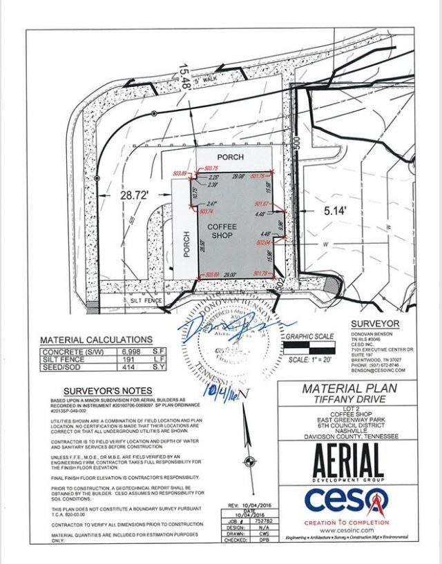 Create the heartbeat of a walkable East Nashville community at East Greenway Park. This commercially approved lot sits at the front of a 62-home wellness-focused neighborhood with direct access to Shelby Bottoms Greenway and the Music City Bikeway-bringing natural, daily foot traffic from residents, runners, and cyclists. Ideal for a ~approx 1,200 sqft coffee shop or café, the site supports flanking covered patios, creating an inviting indoor-outdoor gathering space for connection, creativity, and everyday ritual.The groundwork is set for a smooth launch, with a grease trap already installed and a layout that supports efficient kitchen flow-perfect for coffee, smoothies, and fresh food offerings. Opportunity to add branded bike stands enhances both function and identity, tapping into the strong local cycling culture and reinforcing your presence as a neighborhood hub.This space is designed for an operator who values more than transactions-think organic coffee, grab-and-go options, live music, run clubs, and community programming. Surrounded by nature, thoughtfully designed homes, and an engaged neighborhood, this is a rare opportunity to build something meaningful. More than a café, it's a place where people gather, connect, and return daily-becoming the social and cultural center of a thriving East Nashville enclave.